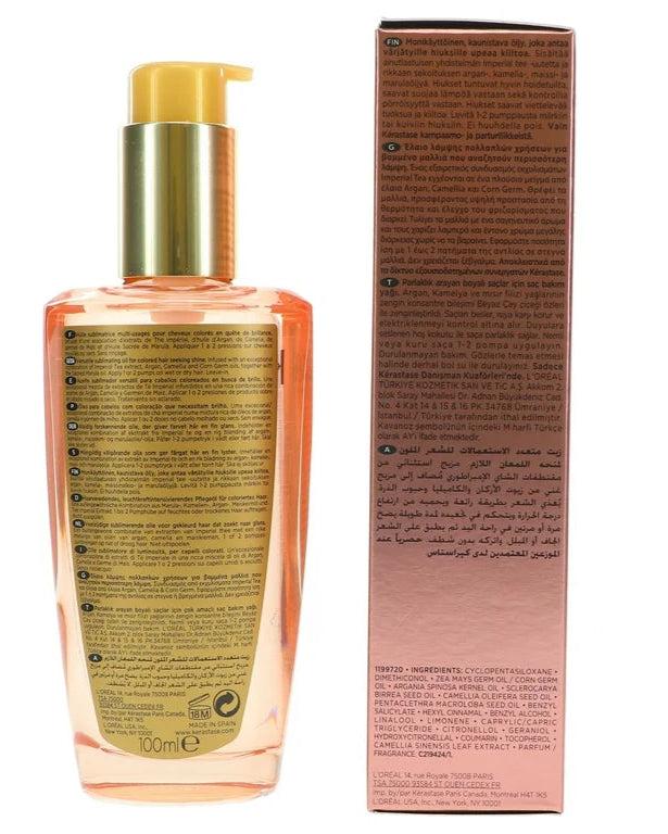 El extracto de Té Imperial de Elixir Ultime ofrece varios beneficios para el cabello, como realzar la luminosidad del color, proporcionar un brillo intenso y controlar el frizz de forma duradera. Además, contribuye a la protección antioxidante del cabello teñido.